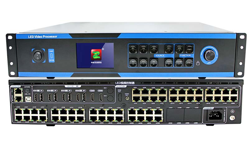 ZH-Z56 4K二合一視頻處理器是中航軟件為滿(mǎn)足LED大屏安裝方便精心打造的一款產(chǎn)品。支持HDMI、DP等高清信號四畫(huà)面任意漫游輸入;最大可接收4096*2160@60Hz像素的高清數字信號,支持56路千兆網(wǎng)口輸出,單機帶載支持最寬16384像素,或最高8192像素的大屏。采用全新通信架構,高刷新、高亮度、全新灰度掃描引擎,納秒級同步,惡劣通信狀態(tài)仍能保持通信順暢,讓廣大用戶(hù)感受更多彩、更美好的LED世界!