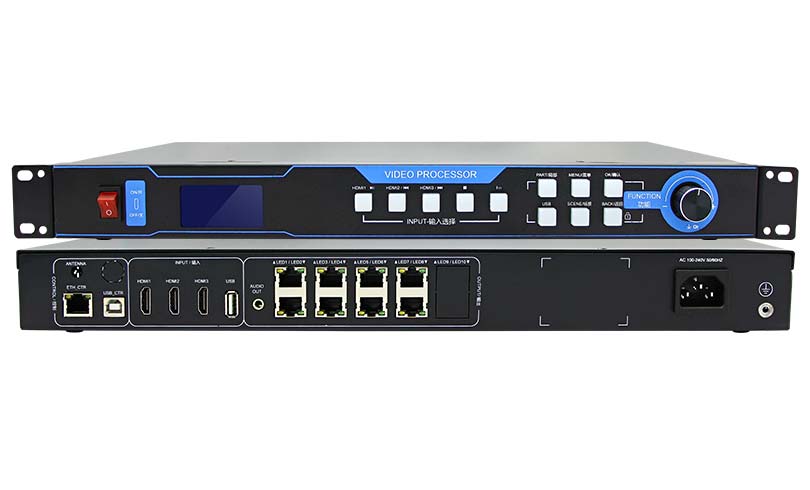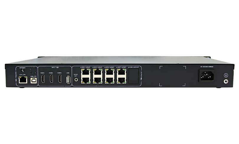 · 支持以下輸出信號接口:LAN(RJ45)×8(帶網(wǎng)口連接狀態(tài)指示),整機最大支持分辨率為520萬(wàn)像素,支持自定義分辨率,最寬16384像素,最高4096像素;Audio音頻(PJ35)×1;