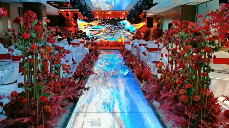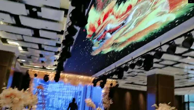 屏體信息:藍普P2.5+P4顯示屏,主屏:2560*1088,地磚屏:3648*320,天幕屏:4800*512
