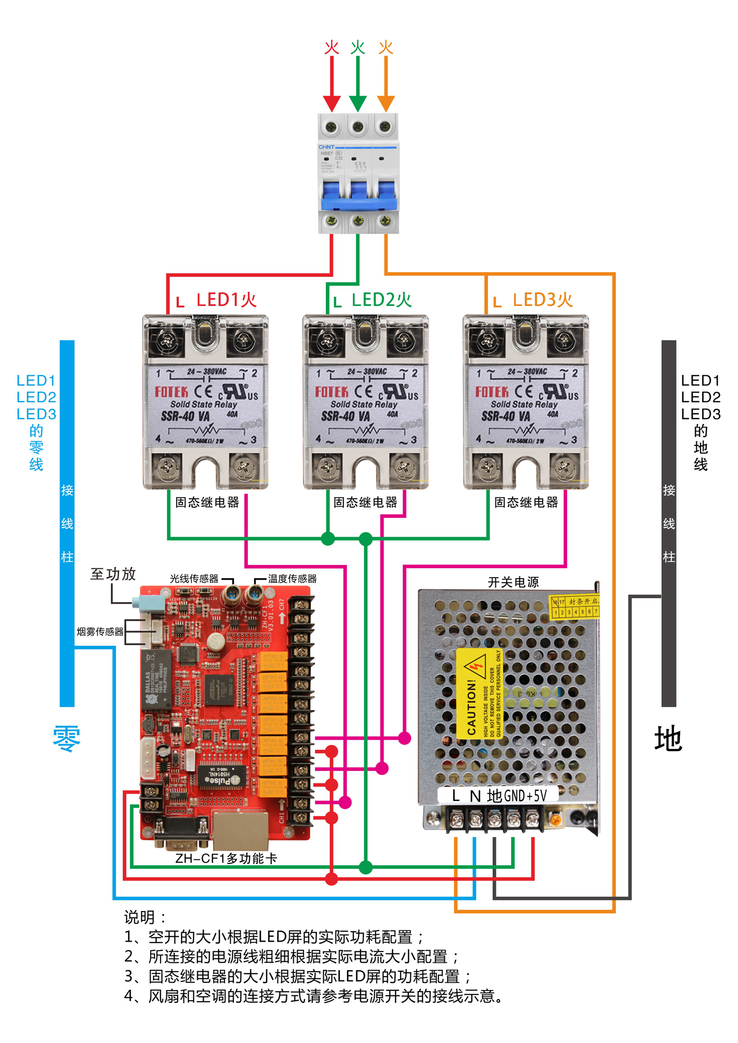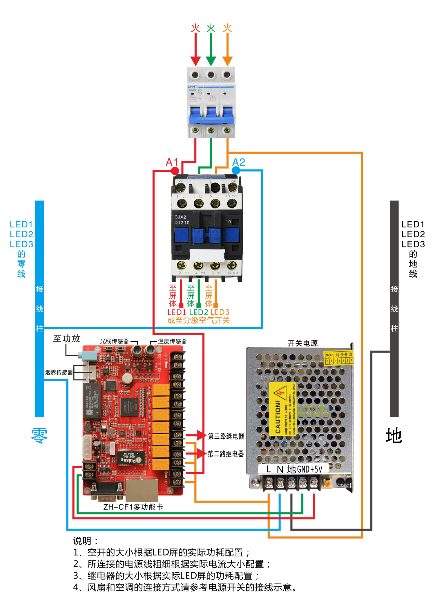 1. 管理LED屏中的電源設備(顯示屏電源、空調電源、風(fēng)扇電源、報警設備)。