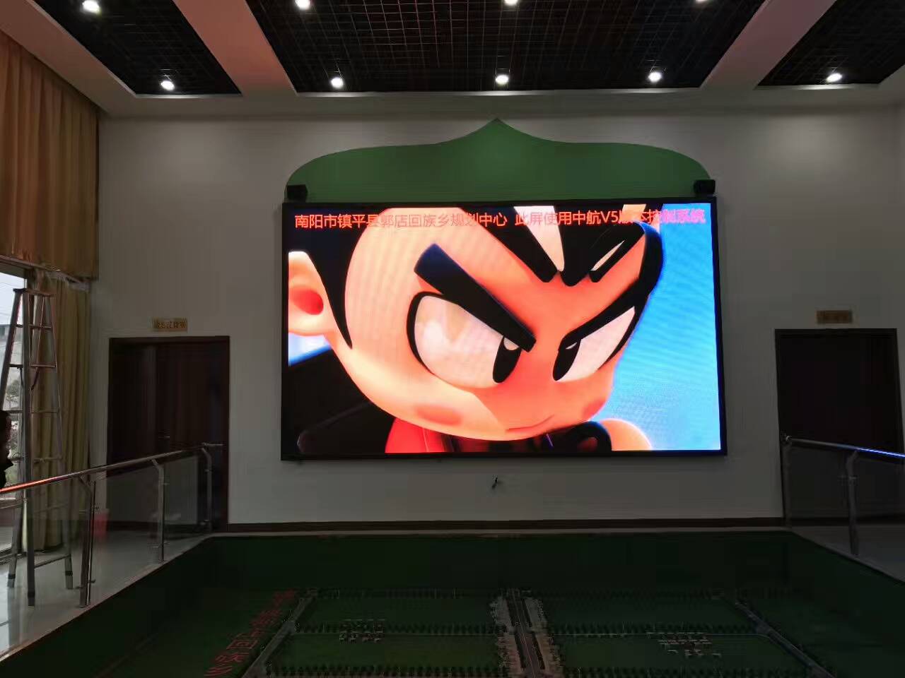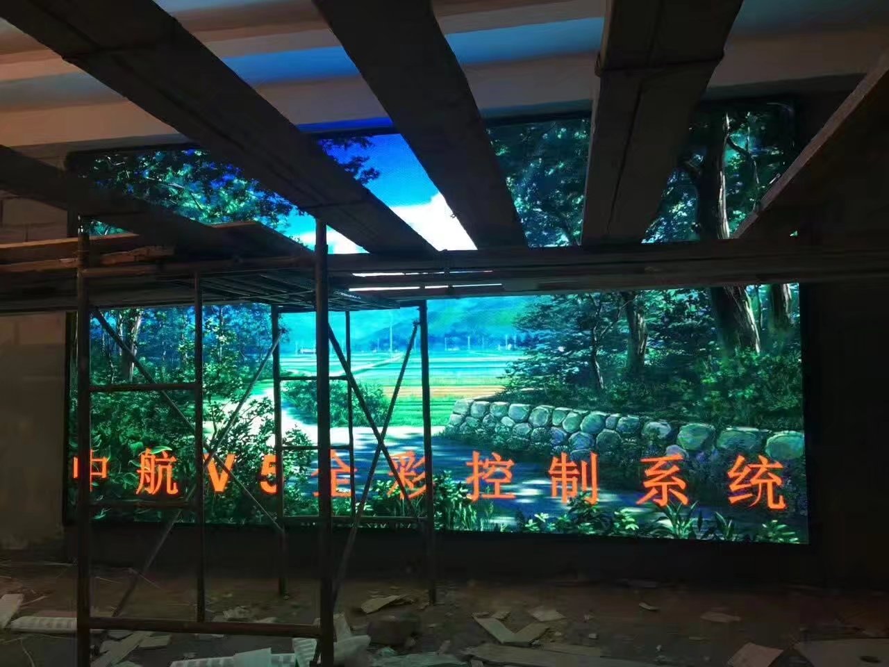 中航全新V5,打造全彩控制系統新格局!南陽(yáng)市鎮平縣郭莊鄉規劃中心,戶(hù)內P4十六掃,單卡最大帶載256*352,中航全新V5完美帶載!