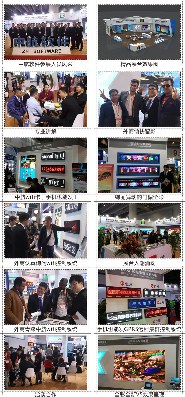 在剛剛過(guò)去不久的 2017廣州國際智能廣告標示及LED展覽會(huì ) 和 2017春季中國中部(鄭州)LED照明展及各地區展會(huì ),中航軟件2017年展示產(chǎn)品系列:全新V5,視頻處理器,全彩同步系列,全彩異步系列,門(mén)楣全彩(高、低灰)系列,超長(cháng)帶載網(wǎng)口卡,全面升級版WIFI系列,GPRS系列,網(wǎng)絡(luò )卡系列等。中航軟件全系列LED控制系統紛呈璀璨,吸引八方賓朋駐足、拍照、洽談!