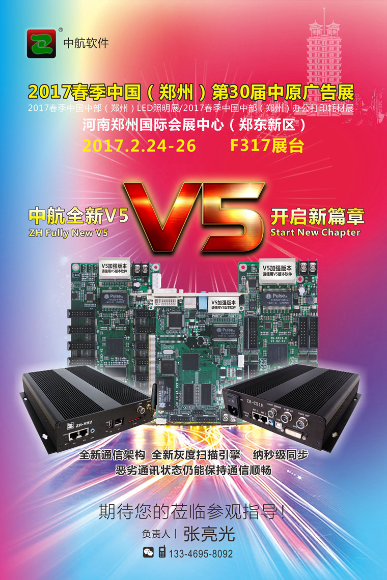 此次展覽會(huì )中航展示產(chǎn)品系列:全新V5,視頻處理器,全彩同步系列,全彩異步系列,門(mén)楣全彩(高、低灰)系列,超長(cháng)帶載網(wǎng)口卡,全面升級版WIFI系列,GPRS系列,網(wǎng)絡(luò )卡系列等。誠邀您蒞臨中航展臺,合作發(fā)展!