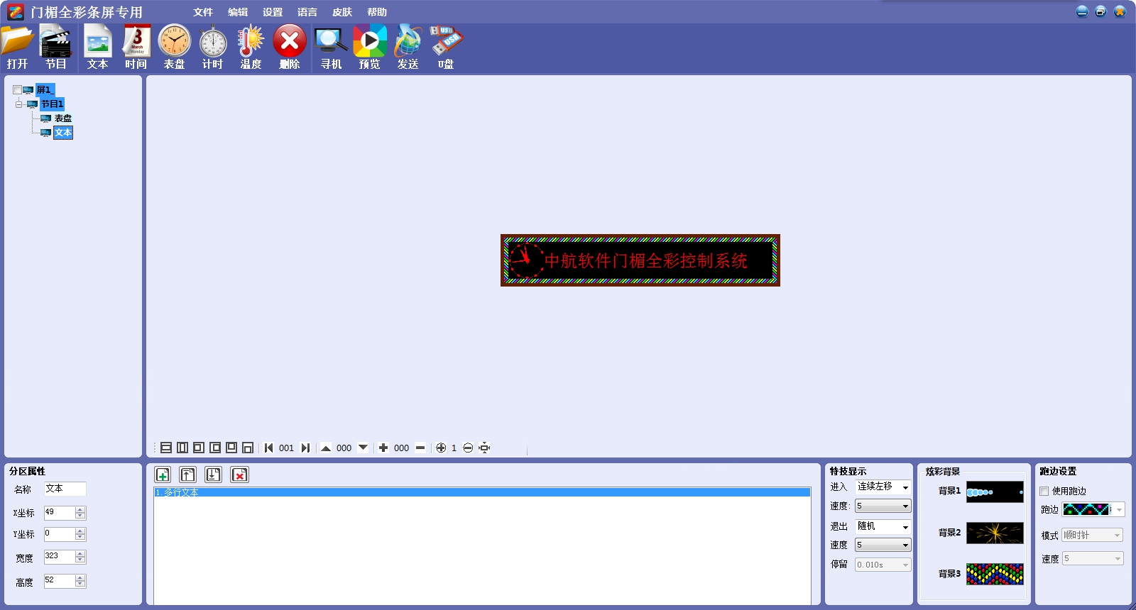 軟件功能:Led Flash Play圖文管理系統,多節目編輯/多區域顯示/多種語(yǔ)言版本。