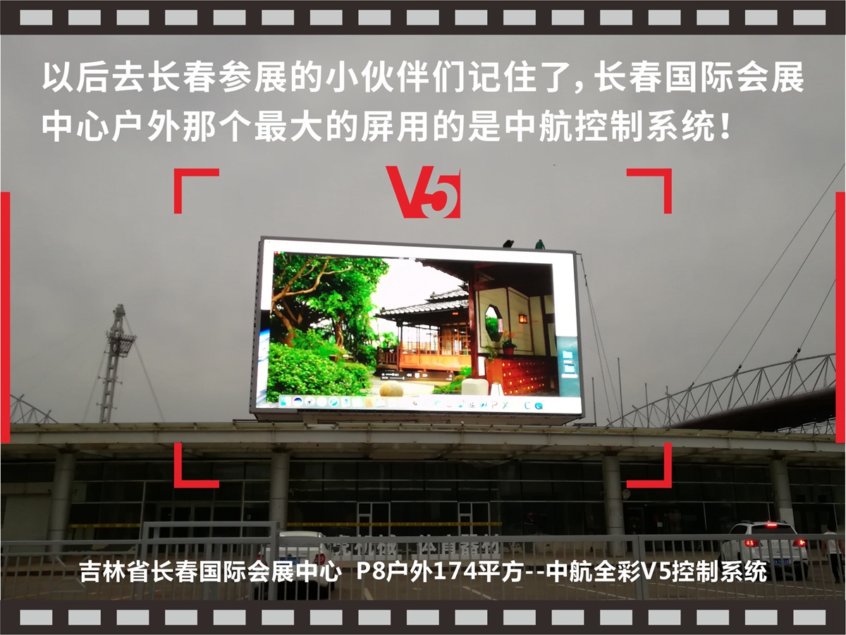 【中航V5精品案例選集】:以后去長(cháng)春參展的小伙伴們記住了,長(cháng)春國際會(huì )展中心戶(hù)外那個(gè)最大的屏用的是中航控制系統!(吉林省長(cháng)春國際會(huì )展中心,P8戶(hù)外174平方,150張接收卡,3張發(fā)送卡級聯(lián))