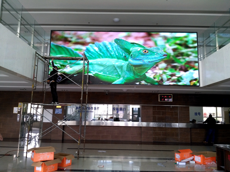 吉林省某縣醫院?jiǎn)挝?/span>,戶(hù)內P4 單卡帶載320*256(高*寬)時(shí)效果,一張發(fā)送卡14張接收卡完美帶載!