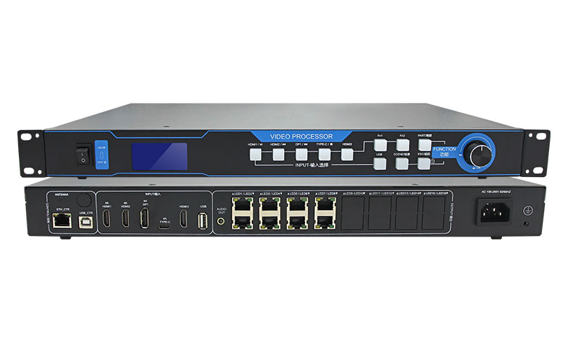ZH-Z8S 4K two-in-one video processor is a product developed by ZH to meet the convenience of LED large screen installation. It supports high-definition signal input such as HDMI and DP; it supports max pixel 4096*2160@60Hz, 8pcs Gigabit network output port, and supports max width 16384 pixels or a max height 8192 pixels. It adopts a new communication architecture, high refresh, high brightness, new grayscale scanning engine, nanosecond synchronization, and can maintain smooth communication in poor communication conditions, allowing users to experience a more colorful and better LED world!